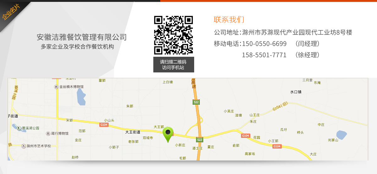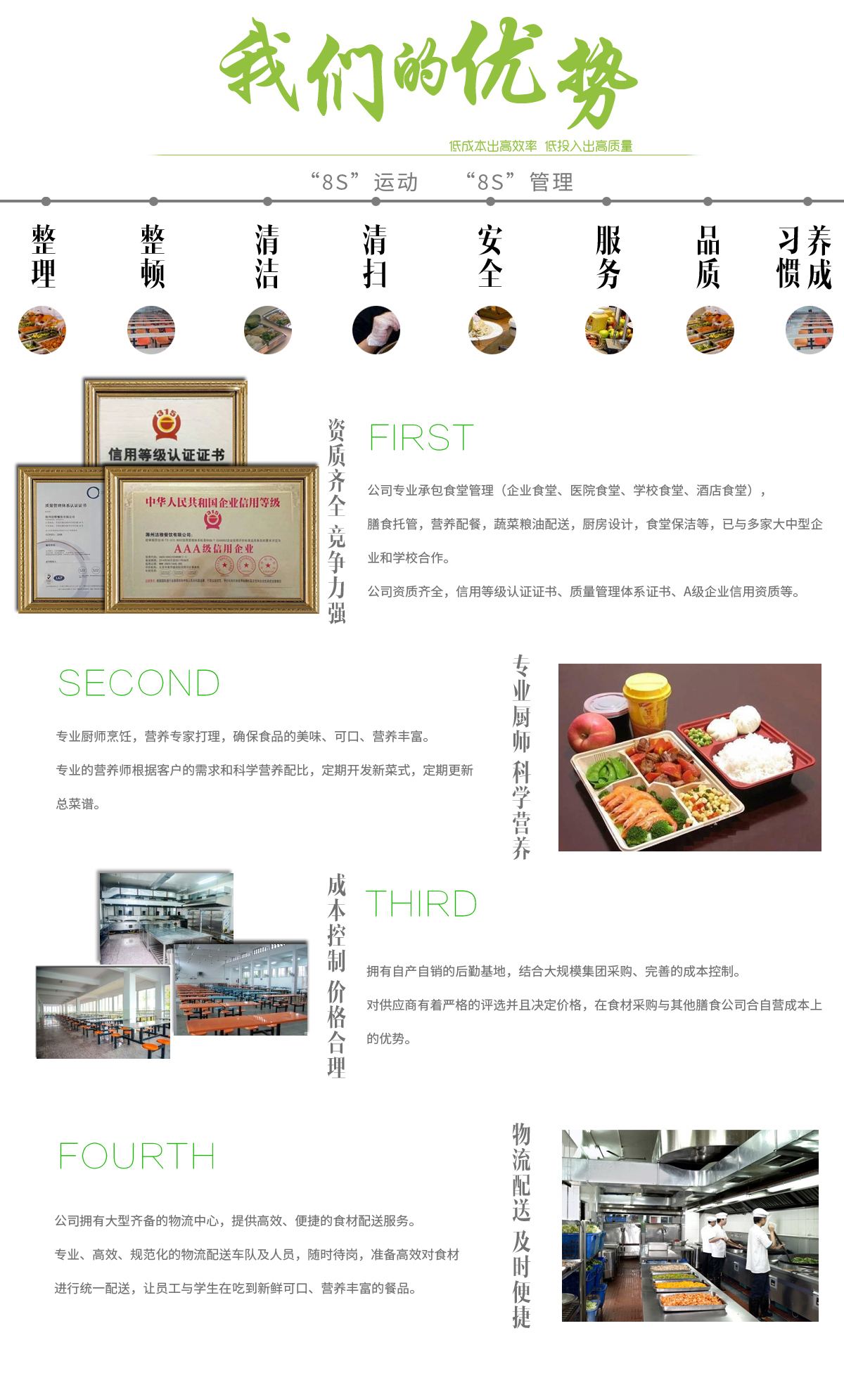 公司介紹      安徽潔雅餐飲管理有限公司是一個(gè)具有悠久歷史的行業(yè),她衍生出非常燦爛的飲食文化,但隨著經(jīng)濟(jì)迅速發(fā)展的今天,這個(gè)傳統(tǒng)行業(yè)也同樣充滿激烈的競爭。   安徽潔雅餐飲管理有限公司成立于2012年,初建位置在江蘇,是一家專業(yè)承包食堂管理(企業(yè)食堂、醫(yī)院食堂、學(xué)校食堂、酒店食堂),膳食托管,營養(yǎng)配餐,蔬菜糧油配送,廚房設(shè)計(jì),食堂保潔。本公司擁有專業(yè)的配餐師,擁有國內(nèi)外各種菜系,西餐,料理,等等,可供應(yīng)各個(gè)外企的就餐習(xí)慣。縱觀國內(nèi)外大中型餐飲企業(yè)的成敗經(jīng)驗(yàn)教導(dǎo),潔雅餐飲除了經(jīng)營特色、規(guī)模菜肴之外,更重要的是潔雅擁有一套現(xiàn)代化的、全面的、科學(xué)的、適合的量販?zhǔn)讲惋嫻芾眢w系,使企業(yè)具有較強(qiáng)的競爭力和生存能力。我們的宗旨是:低成本出高效率,低投入出高質(zhì)量,以我們的服務(wù)贏得客戶的信賴。   披著昨日的風(fēng)塵,我們一路高歌一路前...